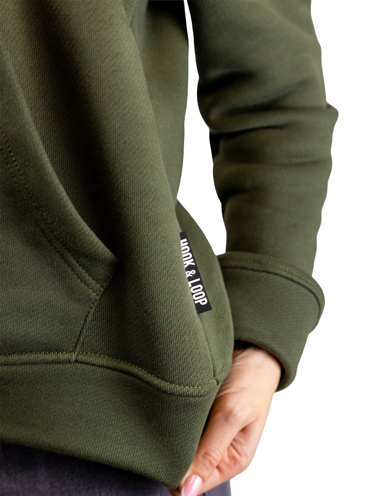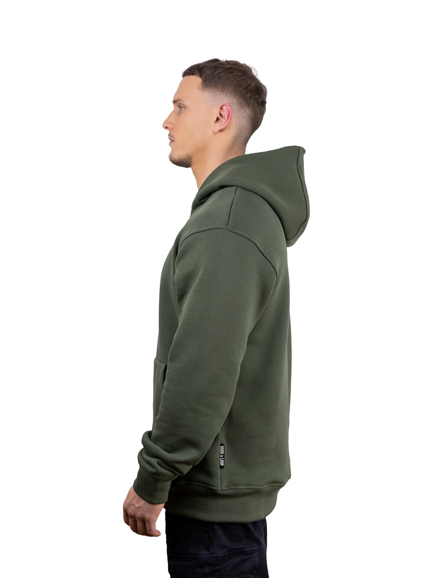 Hookie je premium duks brenda Hook & Loop, izrađen od 100% pamuka težine 500 g/m². Gust i postojan materijal pruža odličnu strukturu i oblik, dok je iznutra glatke teksture, bez klasičnog „ćebastog” flisa koji se vremenom troši — što mu daje čist, moderan izgled i dugotrajnost.